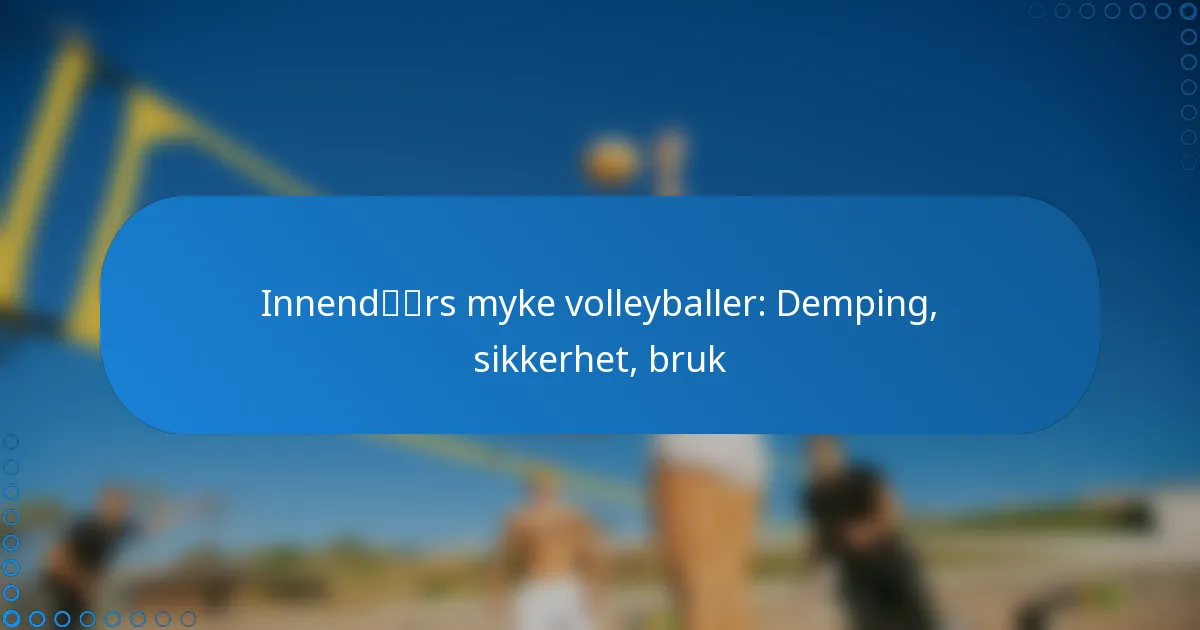 Når du velger innendørs myke volleyballer, inkluderer viktige sikkerhetsfunksjoner dempematerialer, overholdelse av sikkerhetsstandarder og sertifiseringsmerker. Disse elementene bidrar til å redusere risikoen for skader og forbedre spillerens sikkerhet under spill.
