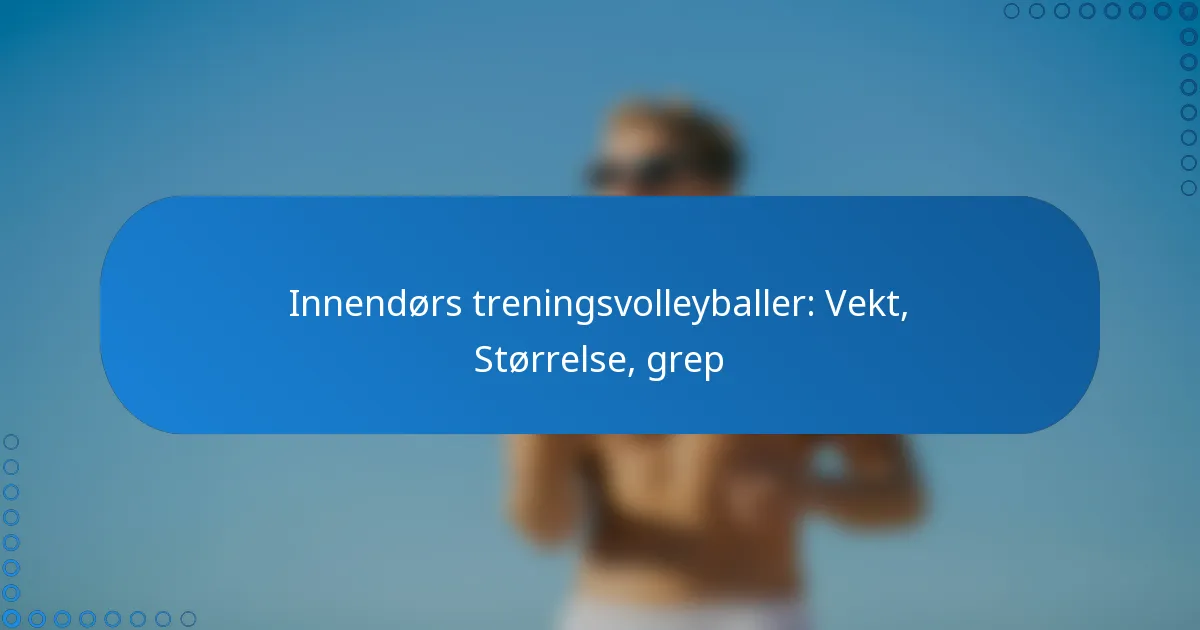 Innendørs treningsvolleyballer er spesifikt designet for å forbedre ferdighetsutviklingen gjennom sine unike egenskaper, inkludert vekt, størrelse og grep. Vekten på ballen spiller en avgjørende rolle for kontroll og manøvrerbarhet, mens standardstørrelser imøtekommer ulike aldersgrupper og ferdighetsnivåer, med størrelse 5 som det offisielle valget for voksenkonkurranser. Å forstå disse faktorene er essensielt for spillere som ønsker å forbedre spillet sitt effektivt.