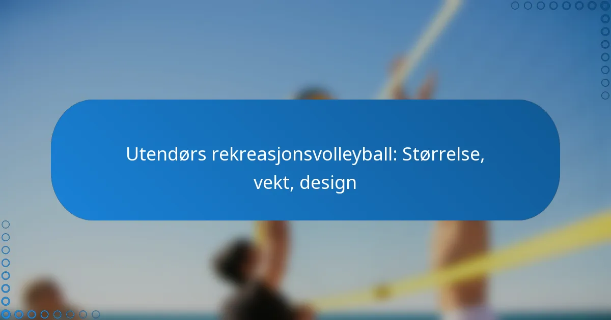 Utendørs rekreasjonsvolleyballer er designet med spesifikke funksjoner som forbedrer ytelsen og holdbarheten i ulike værforhold. Nøkkelaspekter inkluderer materialene som brukes, fargealternativer og designelementer som forbedrer motstandskraften mot utendørs elementer.